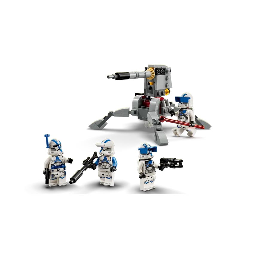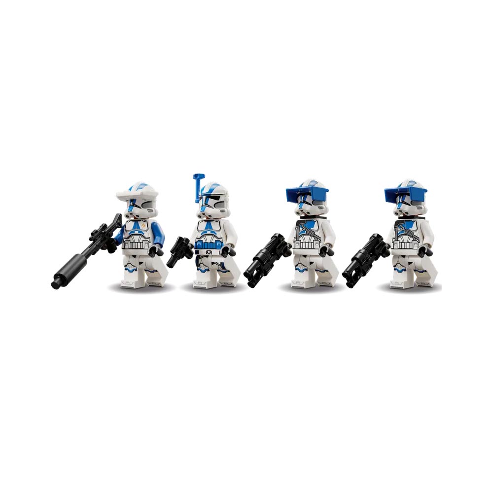 - 4 minifigurky LEGO® Star Wars™ – důstojník 501. legie s blasterovou pistolí, klonovaný specializovaný voják 501. legie s blasterovou puškou a 2 vojáci těžké pěchoty 501. legie s blastery.